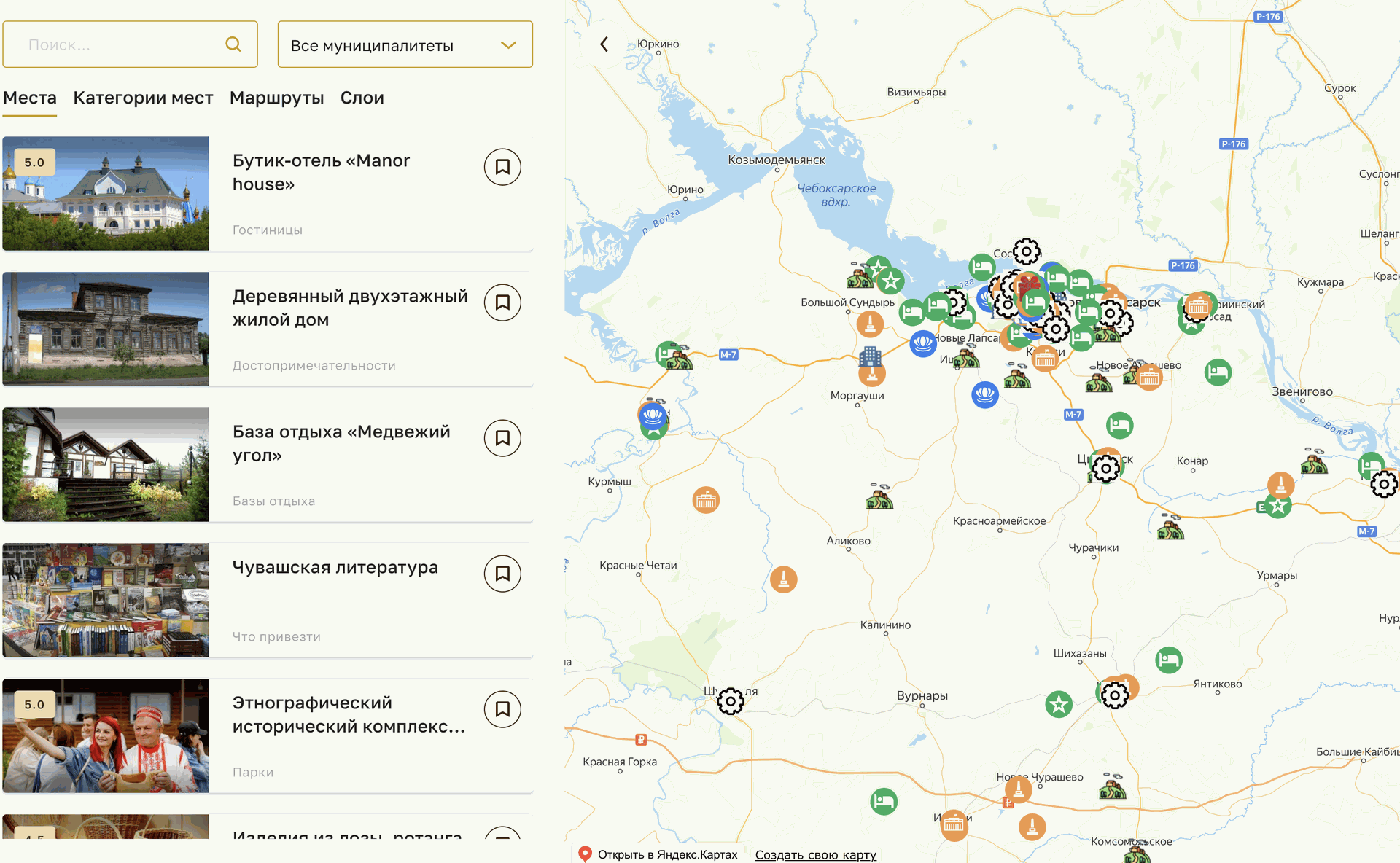 - Собственная визуальная карта на основе Яндекс.Карты (отличается внешним видом)